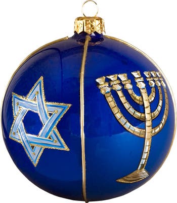 Actions speak louder than words. Make a beautiful statement about inclusiveness this holiday season with an exquisite Judaica-themed ball decoration. Each decoration is individually handmade by fine Polish artisans experienced in the traditional arts of blown glass and hand painting, and each one takes up to seven days work to complete. A beautiful collector s item that adds a special tradition to your holiday decorating.