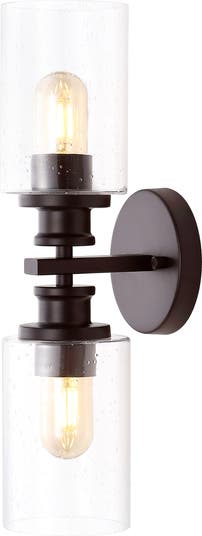 Jules Cylinder 2-Light Iron/Seeded Glass Farmhouse Contemporary LED Wall Sconce