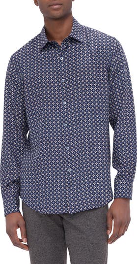An eye-catching mosaic print enlivens a flowy lyocell sport shirt cut for a modern, shaped fit that looks good tucked or untucked.
