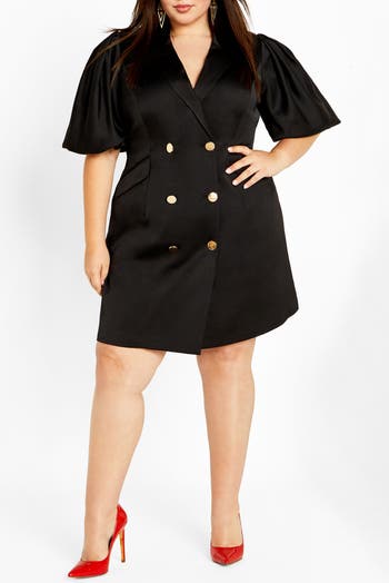 Lustrous satin and glossy goldtone buttons elevate a classic blazer-dress you ll wear from desk to dinner.