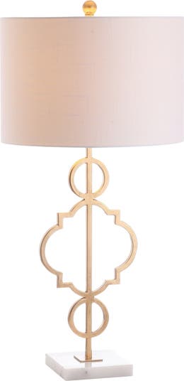 A quatrefoil motif gives this table lamp a bit of far-flung flair. The marble pedestal lends a contemporary edge while the gilded iron finish is a nod to the classics. Topped with a white linen drum shade, it works well with a variety of home decor styles -- including your own!
