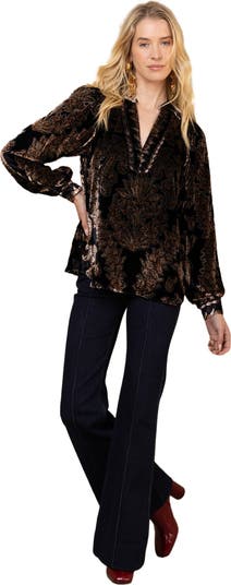 Velvet Burnout Body is lined Long sleeve with cuff Hip length