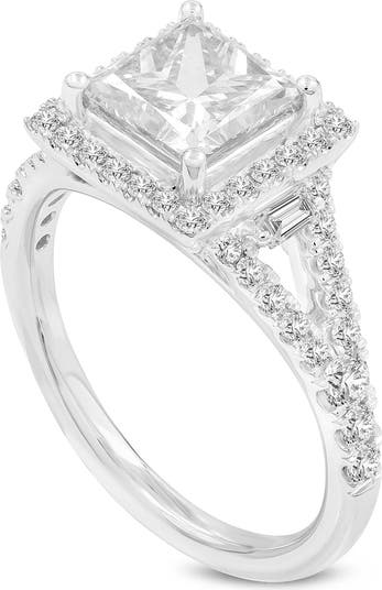 Kamelia 14K White Gold Princess Cut Lab Grown Diamond Halo Engagement Ring - 2.15 Ct