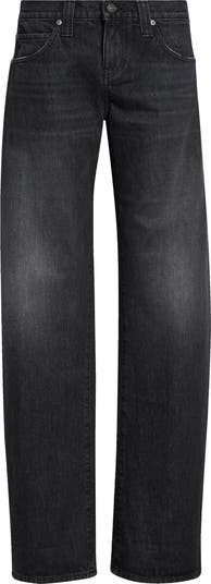 Mid-century men s workwear takes a modern day bow as the inspiration for these low-rise jeans cut from rigid all-cotton denim in a baggy-but-structured bowed silhouette.