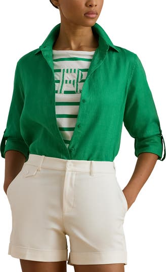 Brighten your everyday lineup with this vibrant linen button-up shirt designed for breezy comfort and timeless versatility. Roll-tab cuffs let you adjust the sleeves to suit the moment, while the machine-washable finish keeps care easy.