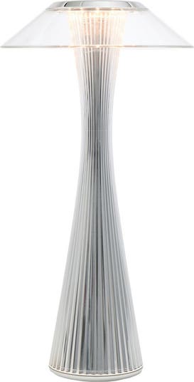 Clean, minimalist design defines a charming Italian lamp designed to evoke the Seattle Space Needle.