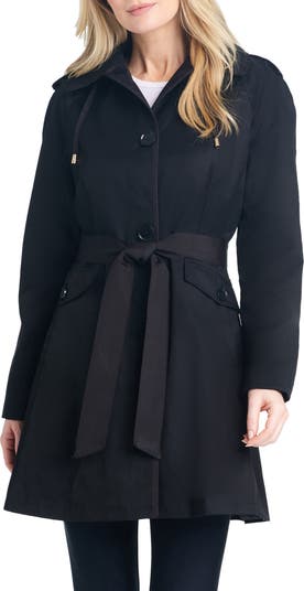 Punching up the classic trench is this swingy iteration featuring a storm flap, epaulettes, an optional hood and roomy raglan sleeves.