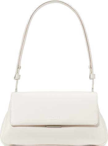 Polished hardware and smooth leather add timeless appeal to a structured shoulder bag fitted with a convertible strap for styling versatility.