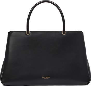 Polished hardware and fine-grain leather distinguish a structured satchel furnished with a divided interior for easy on-the-go organization.
