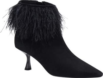 Feathery trim adds a fun, fabulous flourish to a pointy-toe bootie that s the perfect way to elevate your look.