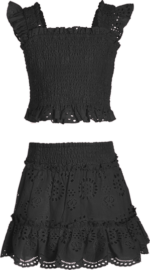 Kayla Smocked Bodice Top Ruffle Eyelet Skirt Set