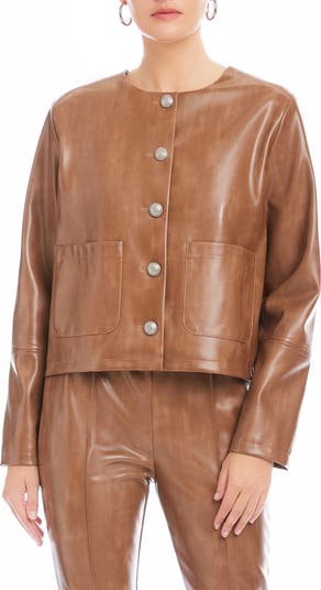Polish off your clean, modern look with the simple styling of this jacket made from soft faux leather in a boxy fit that s given added structure from the full lining.