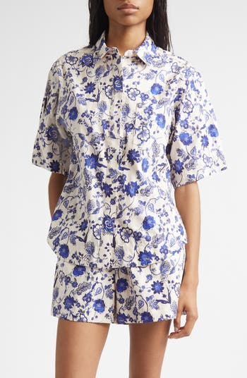 Keaton Floral Elbow Sleeve Cotton Button-Up Shirt