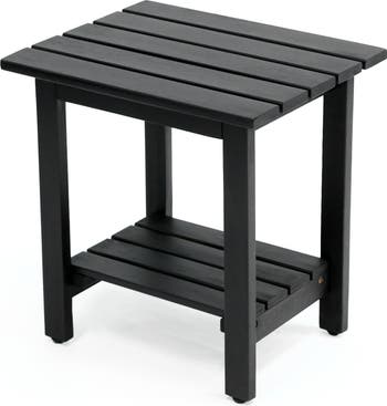 This classic slatted Adirondack table fits easily beside a sofa or between two patio chairs. The square, modern design is made from sturdy acacia wood with a protective oil finish. Create the perfect coffee or cocktail spot on your deck or patio with this timeless outdoor table.