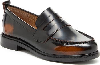 A classic penny keeper and moc toe lend elegant polish to a rich leather loafer crafted with strategic scuffing for lived-in appeal.