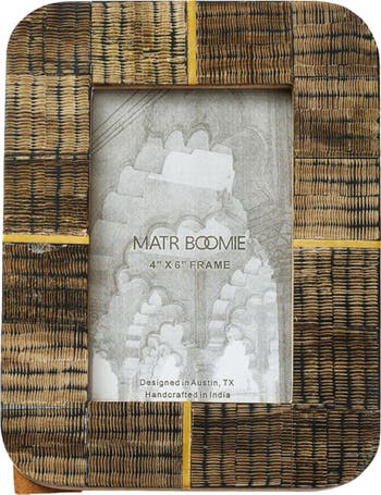Reminiscent of the architecture of traditional houseboats of Kerala this picture frame features a curved carved horn design in beautiful dark colorways. Variation is expected in each piece making it truly one-of-a-kind. Handcrafted by master artisans in India. Sizes include: 4x6, 3x3, 5x7 arch