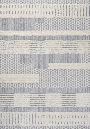 - Against a mingled gray and ivory background, the light gray geometric pattern gives this rug a modern abstract look