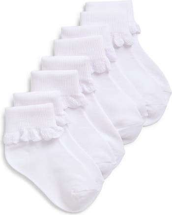 Keep tiny toes comfy in these precious ankle socks featuring fold-over cuffs with scalloped edges.