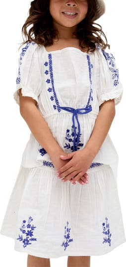 Add a touch of elegance to your little one s wardrobe with the Ally peplum embroidered blouse. Made from soft, breathable cotton, this blouse combines comfort and style for all-day wear. The delicate embroidery and peplum detail create a charming, timeless look perfect for any occasion. Pair with the Ally paneled waist embroidered skirt for a cute co-ordinated look.