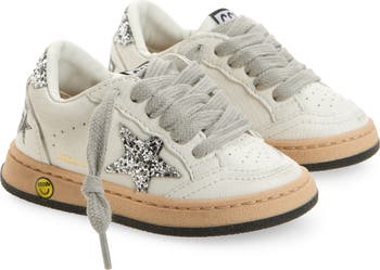 Inspired by 80s-era college basketball styles, this low-top with glittery accents is strategically scuffed to look like it s already seen some play time.