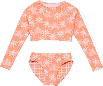 Long sleeves and built-in sun protection offer extra coverage for your junior sun chaser as they enjoy days at the pool or beach in this two-piece swimsuit.