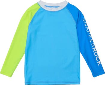 They can sport classic surf style in this raglan-sleeve rashguard top with quick-drying fabric, built-in sun protection and a standout colorblocked design.