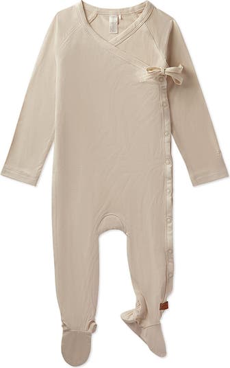 Keep your cherub stylishly cozy in this everyday baby footie. It s made with premium modal, famous for silky softness and breathable comfort. Plus, it s loaded with laid-back features, from its relaxed raglan sleeves to its breezy crossover neckline. Convenient side snaps simplify diaper changes. And a cute little bow ties it all together.