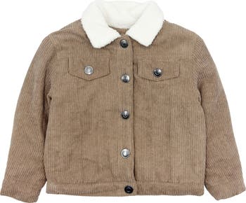 Fluffy faux-shearling lining keeps your kid nice and toasty when temperatures drop in this timeless cotton corduroy trucker jacket.