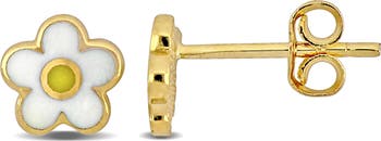These adorable stud earrings feature a charming design adorned with beautiful enamel, meticulously crafted in 14K yellow gold. With their playful yet elegant appeal, these earrings effortlessly enhance your child s look, making them a perfect addition to their jewelry collection.