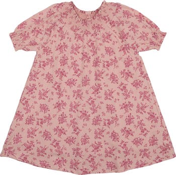 A pretty smocked yoke and cuffs adorns a cotton-rich dress rendered in a vintage-look print of garden blooms.