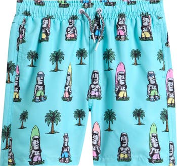 These quick-drying swim trunks feature a fun print and a handy back flap pocket with drainage grommets to help prevent ballooning.