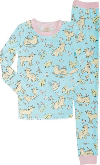 These kid-sized jammies are purrrfect for bedtime—or a little cat nap—in supersoft stretch velour featuring a playful print.