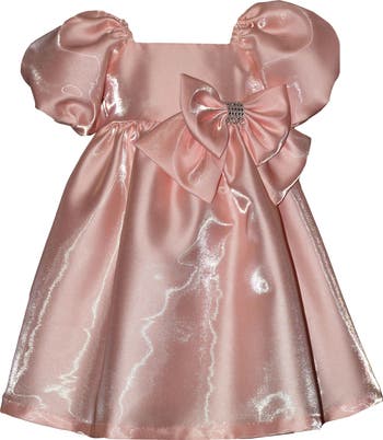 Your little darling will be picture perfect in a shimmer-simmered dress fixed with a darling bow.