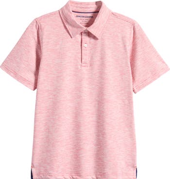 Space-dyed microstripes bring colorful dimension to this kid-sized polo cut from comfortable stretch jersey with a supersoft brushed finish.
