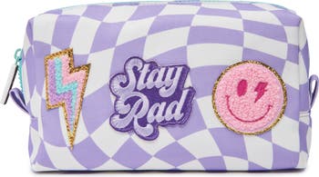 They ll easily tote their goodies around in this roomy zip pouch with appliqued patches!