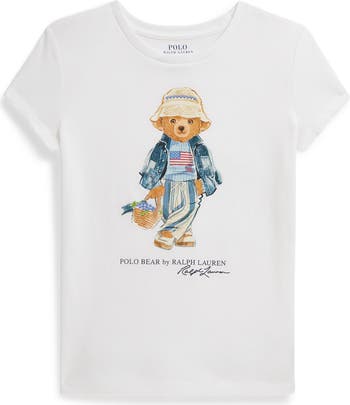 Soft, breathable cotton keeps kids comfy from the classroom to the couch in this classic crewneck T-shirt, where embroidered accents bring Ralph Lauren s iconic Polo Bear to life in her coastal New England attire.