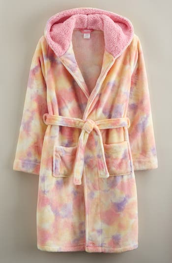 A plush robe made from soft and cozy fleece indulges your child in soft comfort all the way up to the roomy hood.