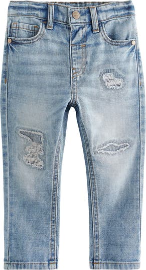 Cool rips on the legs heighten the on-trend style of these nonstretch jeans styled with a back elastic waist and five-pocket design.