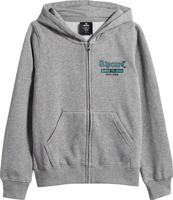Let your board-rider keep memories of gnarly waves alive in this comfy combed-cotton-rich fleece hoodie made with a handy full-length zipper and kangaroo pocket.