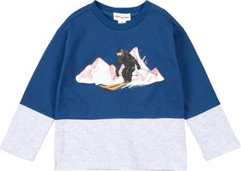 Bring a the ski slopes to their wardrobe with this comfy cotton sweatshirt boasting a color-blocked design and roomy kid-approved fit.