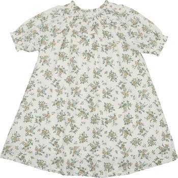 Smocked trim outlines the neck and sleeves of this floral cotton-blend dress that they ll love to twirl in.