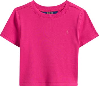 A stretchy ribbed knit keeps your kiddo comfy in this solid top authenticated with an embroidered polo rider at the chest.
