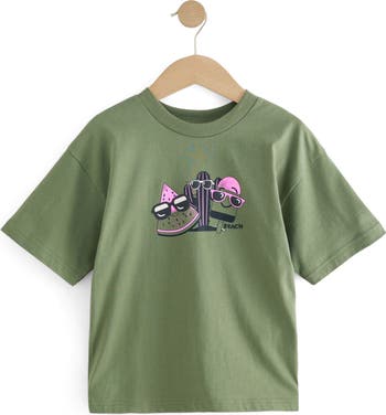 It s time for the beach as soon as your child slips on this sun-day, fun-day cotton T-shirt that s touched up with a puff-print graphic.