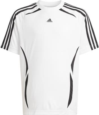 Roomy and ready to play, this T-shirt made entirely of recycled fibers brings the loose, relaxed fit of Y2K soccer styles to your kid s game time, downtime and every time in between. Bright 3-Stripes on the sleeves add big adidas energy to any favorite activity.