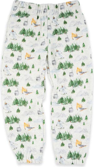 A ski trip pattern puts a wintry spin on these cozy cotton joggers that are perfect for playtime.