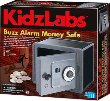 BUZZ ALARM MONEY SAFE - Build your own double-protected money safe with the Buzz Alarm Money Safe! This hands-on STEM project combines mechanical engineering and basic electronics, allowing kids to assemble a fully functional safe complete with a realistic combination lock, customizable PIN system, and buzzer alarm. Store your pocket money, top secrets, or treasures inside—protected from any spy or burglar! The kit includes all essential components for assembly, such as a dial, ratchet wheel, lock latch, switch slider, alarm buzzer, and safe panels. Detailed instructions guide children through building the safe, teaching them how mechanical parts like gears and levers work, while introducing basic circuit wiring to power the buzzer alarm. The realistic combination lock mechanism demonstrates security principles, and the customizable PIN system encourages creative problem-solving. Once built, the Buzz Alarm Money Safe functions as a real piggy bank, making financial responsibility fun while fostering an understanding of engineering and electronics concepts. Perfect for young inventors and future engineers, this kit is an engaging and educational activity that offers both learning and practical use.