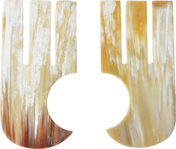 Bring an earthy, cultural vibe to your handcrafted table with a pair of the Kindred Salad Hands. Assorted color tones. This unique, hand-crafted horn product is sustainably made from the horns of the Ankole-Watusi, or Ankole Longhorn, a breed of cattle native to western Uganda and parts of East Africa. These distinctive horns are a recycled byproduct of the food industry and are purchased directly from the cattle keepers, providing revenue for local cattle keeping communities. The horn is then hand carved and polished according to Maadili designs by a small scale artisan community.