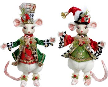 These charming Christmas kitchen mice are dressed in elaborate festive outfits, complete with velvet coats, jeweled embellishments, and whimsical hats. Their playful expressions and detailed attire bring a touch of luxury and joy to holiday décor. Perfect for countertops or shelves, they add a magical and elegant flair to any Christmas kitchen display.