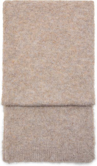 Warm up your look with this cozy scarf knit from soft, fuzzy yarn and featuring playful fringe.