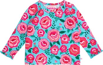 Knit Long Sleeve Ruffle Layering Tee is the perfect addition to any stylish girl s wardrobe. This ruffle layering tee is not only charming with its delightful ruffle detail but also practical with its 4-way stretch fabric that resists fading and snagging, ensuring it looks great even after multiple wears. Ideal for pairing with various colors, this girls tee complements navy, gold, white, and gray, making it exceptionally versatile. Whether layered or worn alone, this soft knit girls tee offers comfort and style, making it a must-have in the collection.